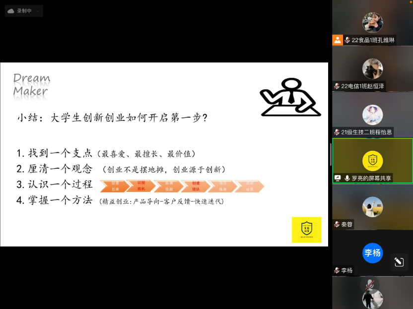 罗老师围绕“找到一个支点”“厘清一个观念”“认识一个过程”“掌握一个方法”四个方面,阐述当代青年应当如何在创新创业领域有所作为。
