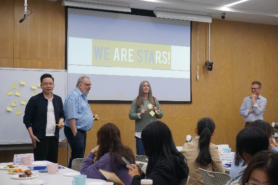 分享结束后,同学们用小纸条写下了自己对未来的期望和困惑,从课程学习到专业方向发展,从衣食住行到人文交流。在场的老师们抽取纸条为员工们一一解答,师生就未来学习生活进行了热烈的探讨,现场氛围轻松热烈。
