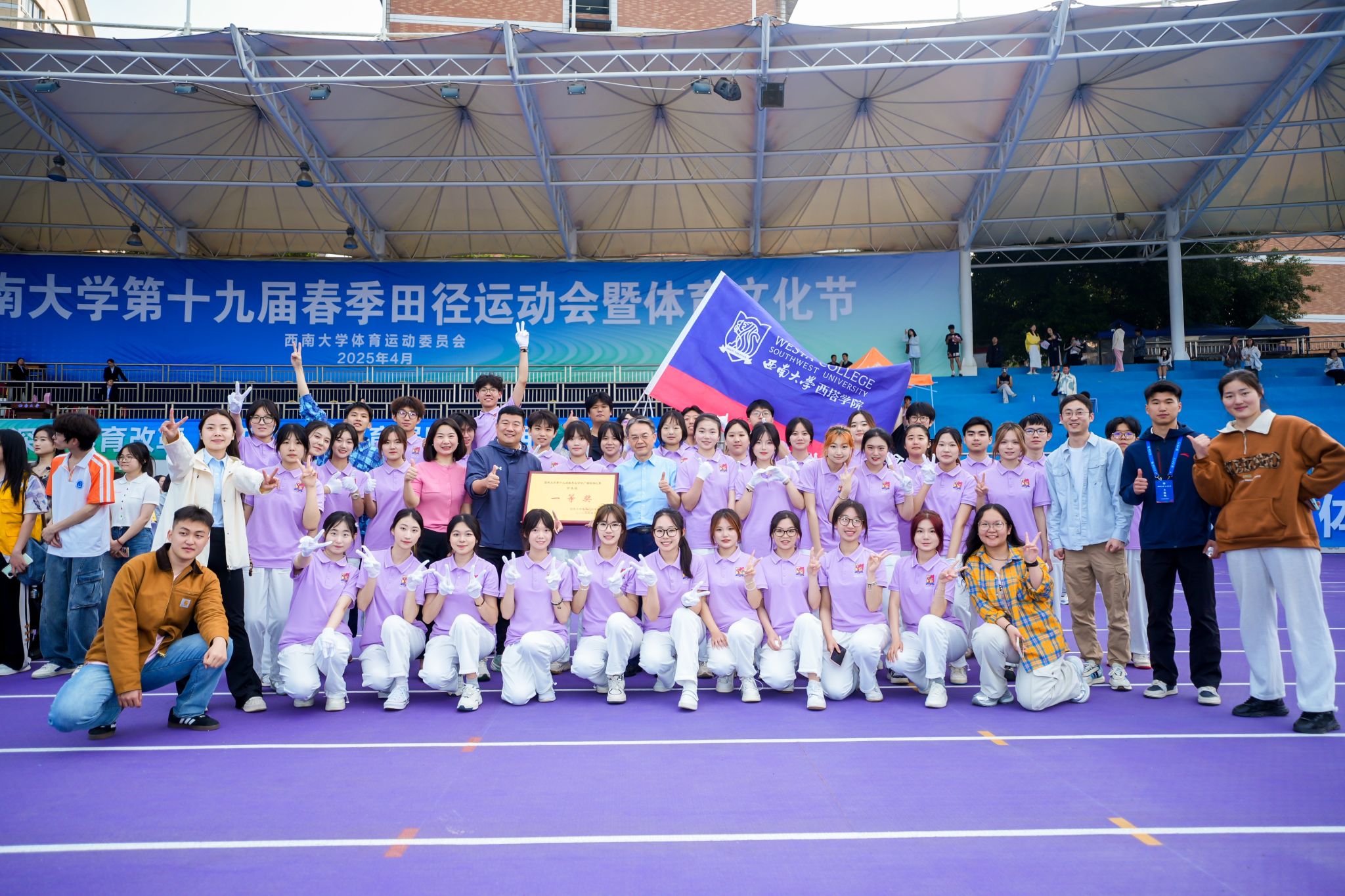 凭借着团结一心、奋勇拼搏的精神,西塔学子在广播操比赛中脱颖而出,一举夺得“一等奖”的佳绩。随着颁奖典礼上欢呼声响起,汗水与荣耀交织在一起,拼搏的精神与深厚的友谊在每一位西塔学子心中深深扎根。