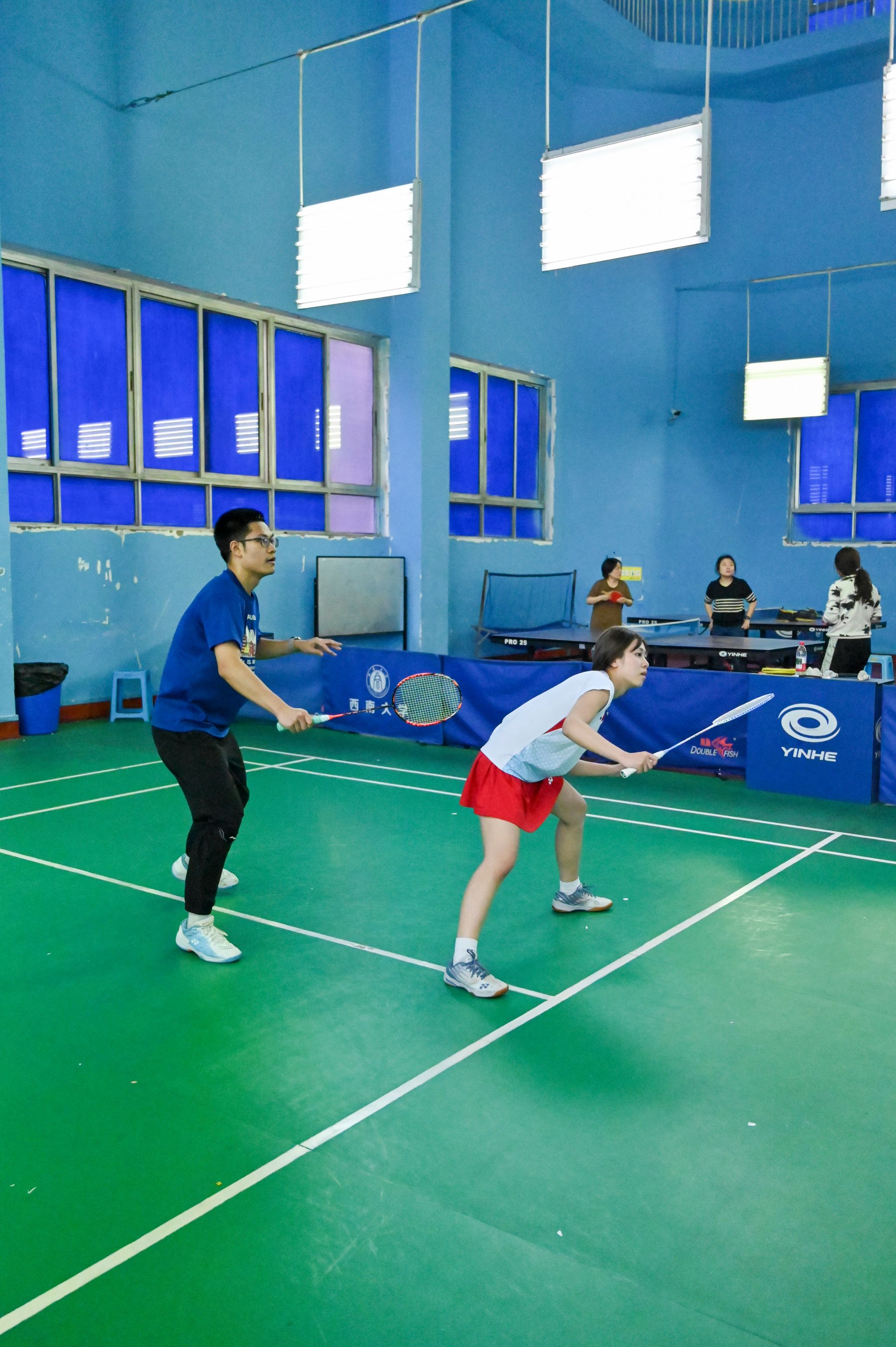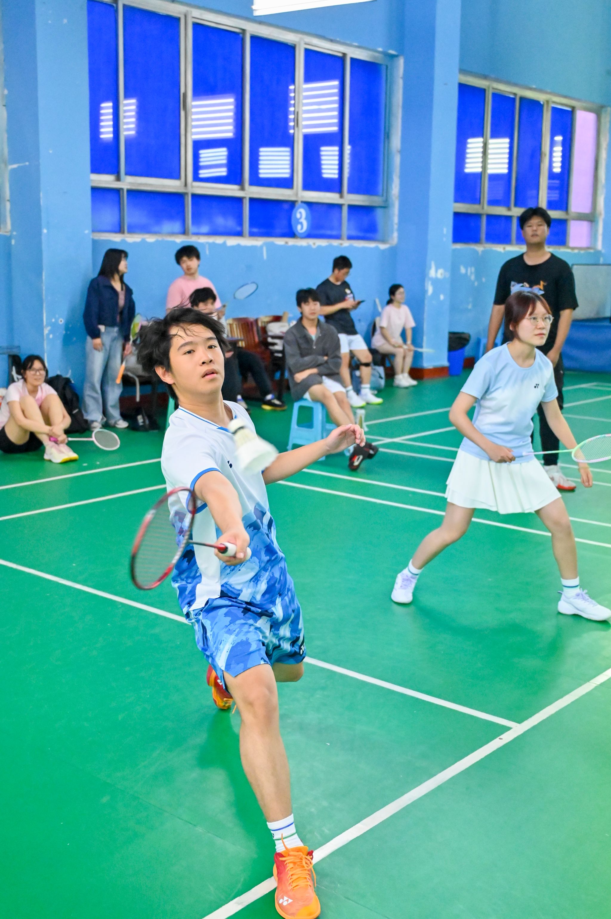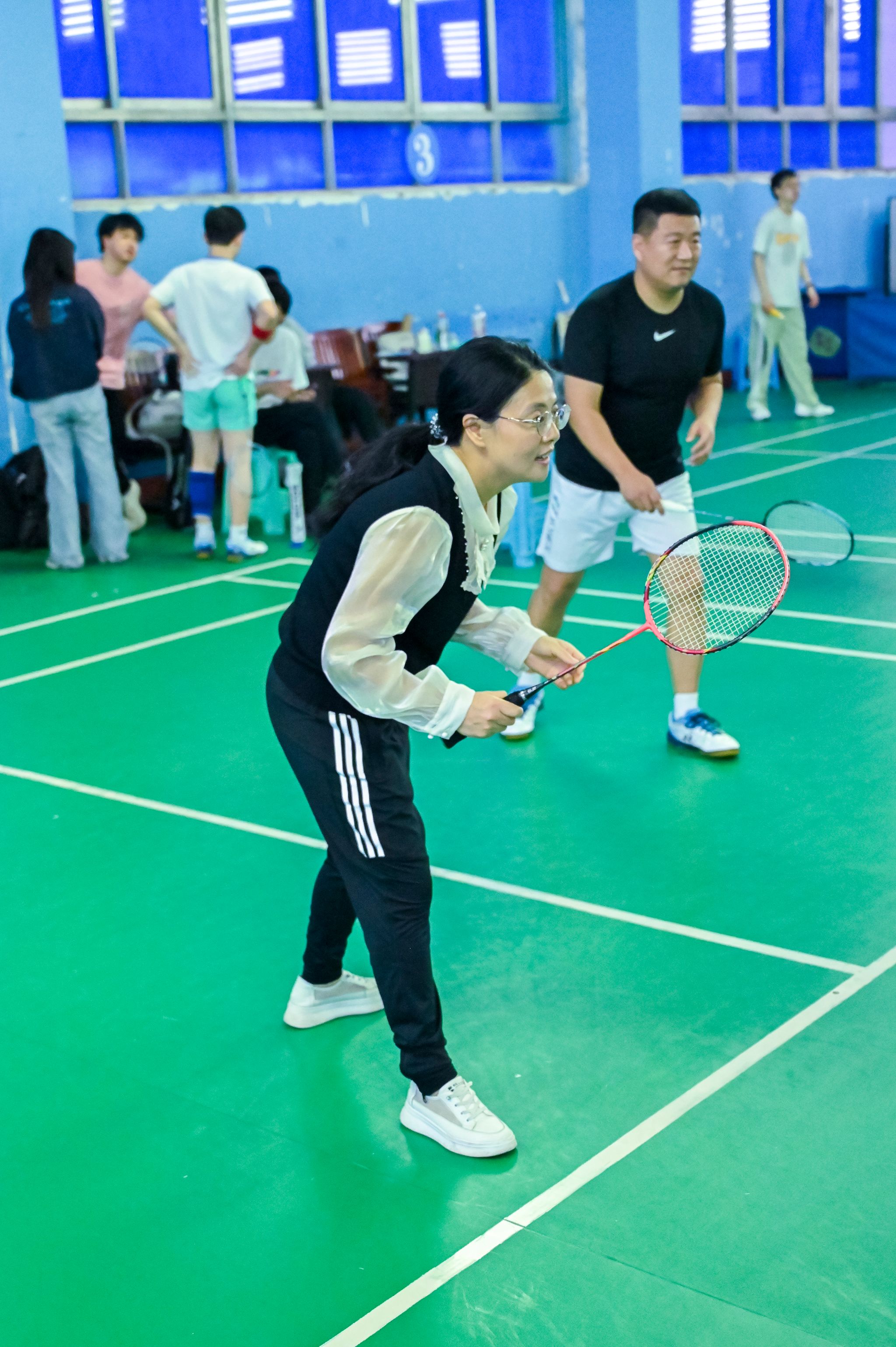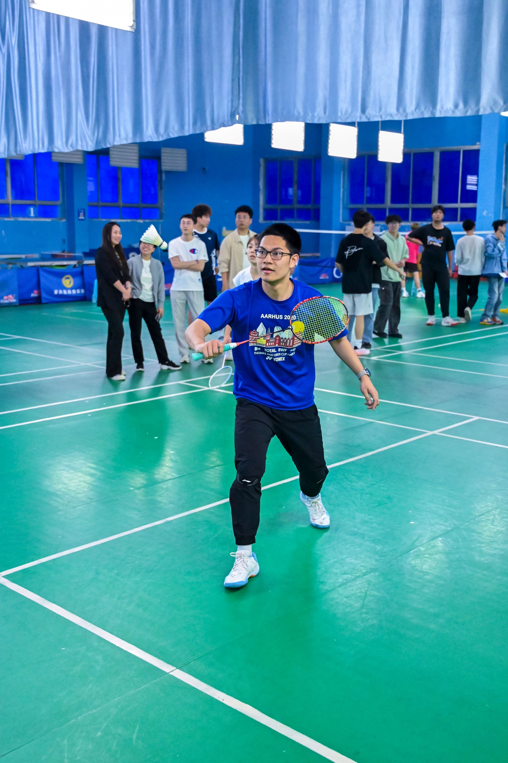 员工选手亦展现出初生牛犊的锐气,敏捷的网前扑杀、凌厉的底线扣杀频频向老师们发起挑战。单打对决中,数十回合的多拍拉锯扣人心弦,双方在耐力与技巧的博弈中尽显体育精神;双打赛场上,师生组合默契十足,眼神交汇间已完成战术配合。精妙的轮转、巧妙的吊球赢得满堂喝彩,比分牌上的数字交替攀升,将赛事氛围推向顶点。