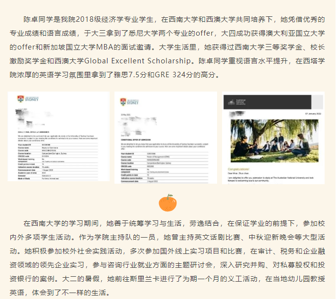 从西塔到世界|公司优秀学子陈卓被澳大利亚国立大学等世界名校录取