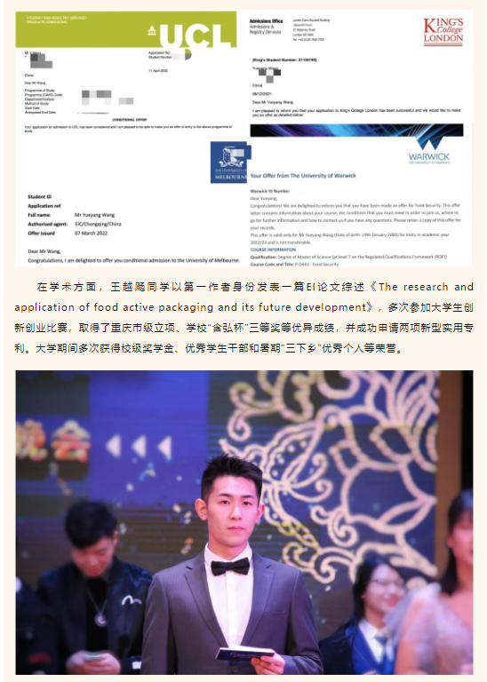从西塔到世界|公司优秀学子王越飏被伦敦大学公司等世界名校录取