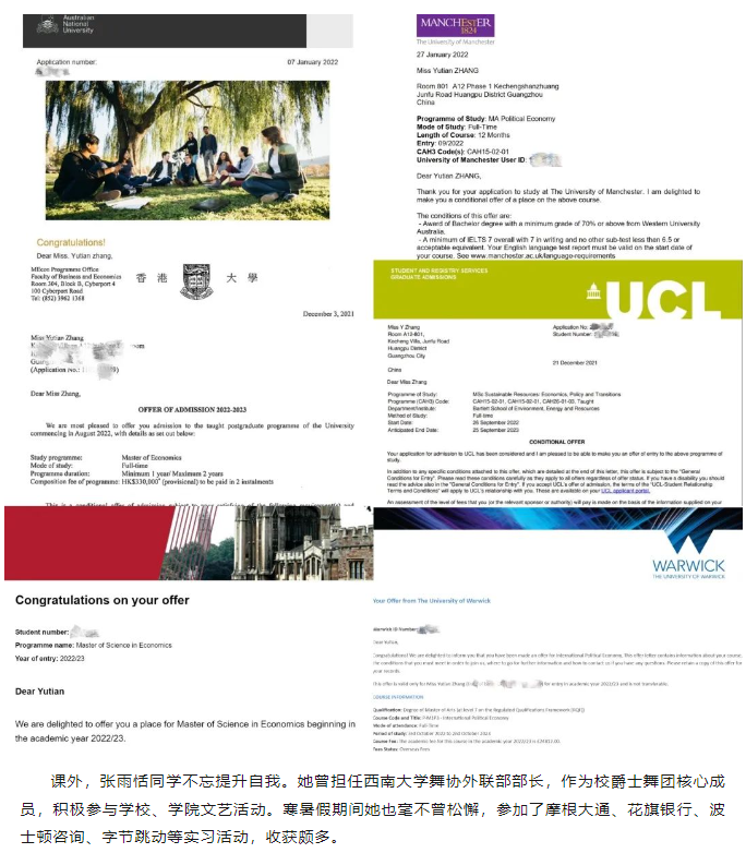从西塔到世界|公司优秀学子张雨恬被伦敦大学公司等世界名校录取