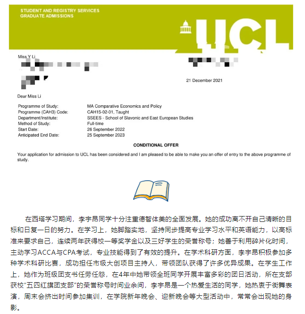 从西塔到世界|公司优秀学子李宇昂被伦敦大学公司等名校录取