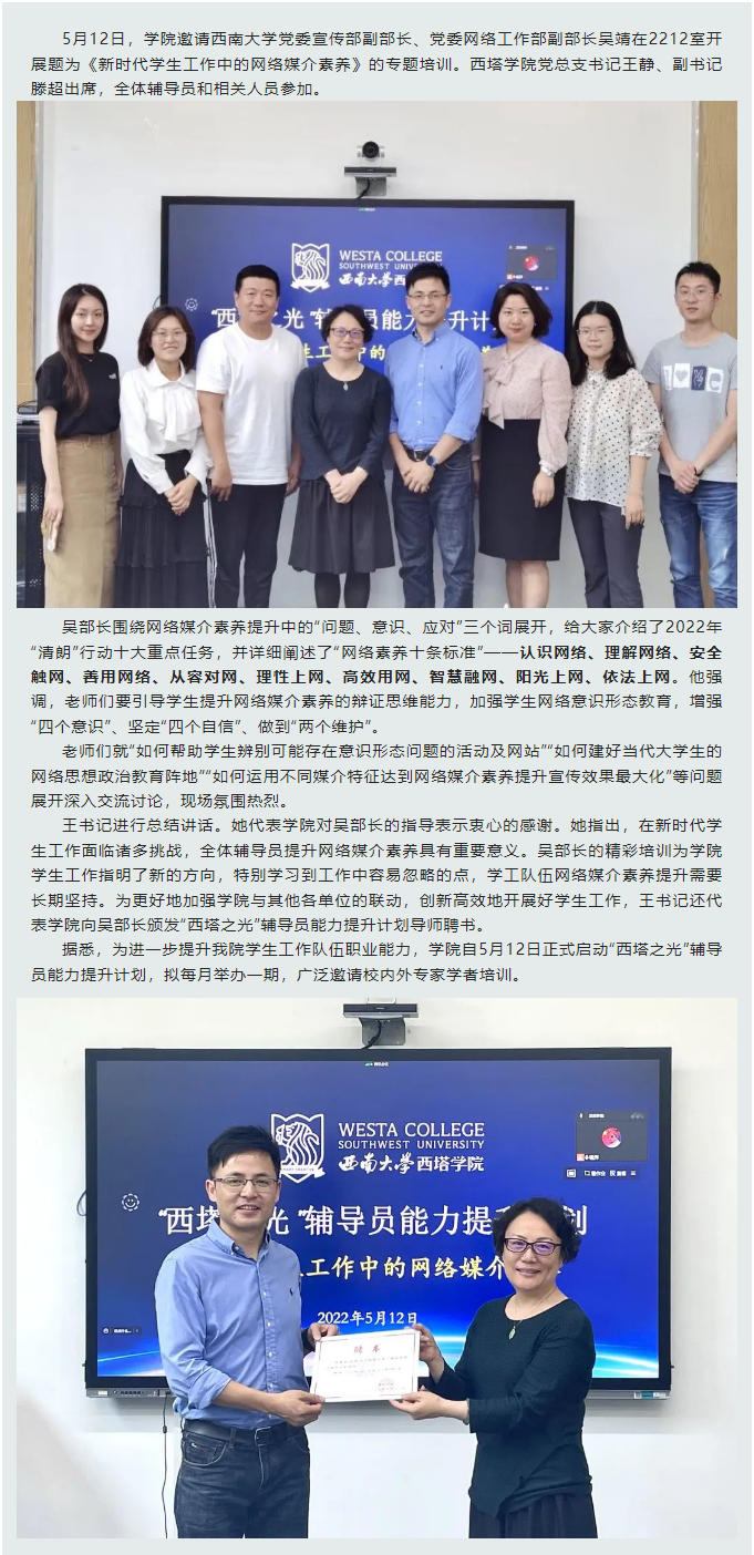 公司启动“西塔之光”辅导员能力提升计划