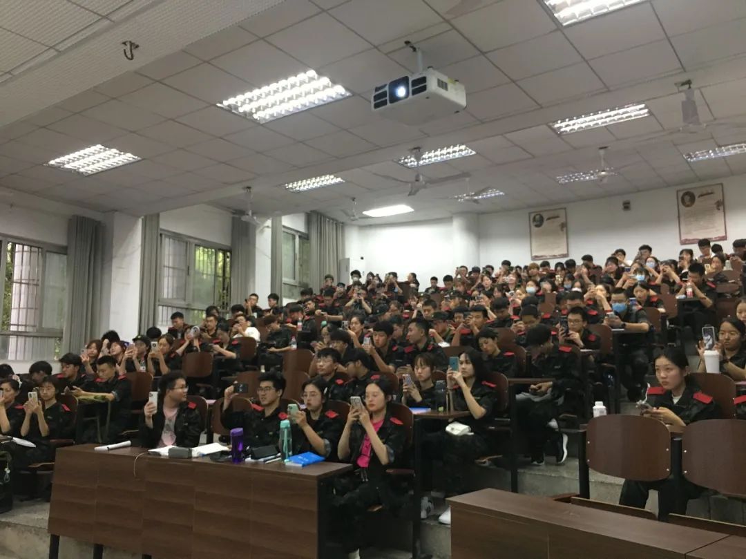 紧接着,新生们关注了微信“终结诈骗服务平台”并注册“金钟罩”,更进一步保护同学们的人身安全与财产安全,为同学们的老员工活保驾护航。然后,新生们观看了征兵宣传片,人民解放军鼓励同学们应征入伍,为国家为人民服务。同时,作为老员工,应主动担起自己的责任。
