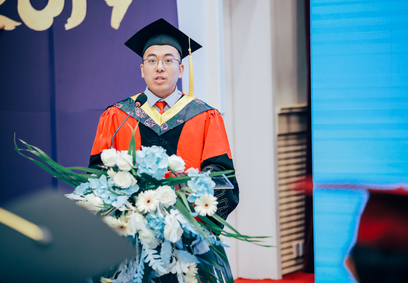 食品科学公司付余教授作为教师代表发言,向毕业生们提出几点建议:坚定信心,勇担重任;不忘初心,追逐梦想;潜心学习,厚积薄发;律己修德,把握方向。他希望同学们带着对母校的感恩之心,带着梦想与执着前行。