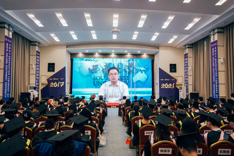 2017级毕业生代表、生物技术专业的曾诚同学进行了以“梦想在何处”为主题的发言,向公司和公司的培养表达了感激。她分享了自己如何从初入校园的迷茫,找到愿继续为之奋斗的专业方向,并即将在北京大学继续博士阶段学习的心路历程。最后,她祝愿大家梦想常青,担当常在,无愧于西大精神,无愧于这个时代。