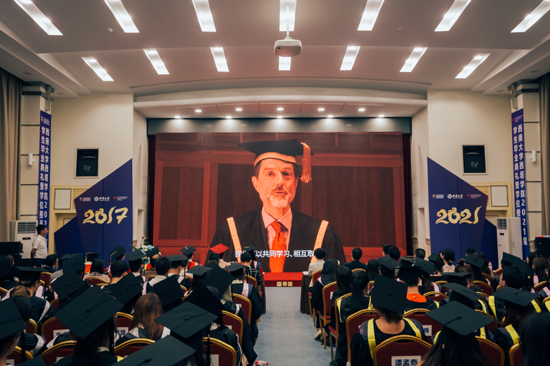 塔斯马尼亚大学董事长Rufus Black教授为毕业生录制祝福视频表达祝贺,他提到疫情对全球高等教育带来的挑战,而正是有我们每一个学子的参与,才让中澳合作与友谊超越国境和边界,得以延续。作为合作伙伴,他对西塔的成绩表示充分肯定,并表示将继续珍惜这份友谊。