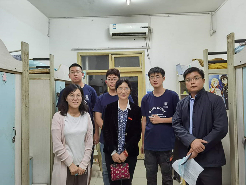 为及时了解新生进校后的适应情况,9月21日晚7:30,公司党总支书记王静、经理赵玉芳、副经理张萌、各年级辅导员和新生年级班主任一行,到访员工寝室,亲切看望2020级的新同学们,为他们带去问候和关心。