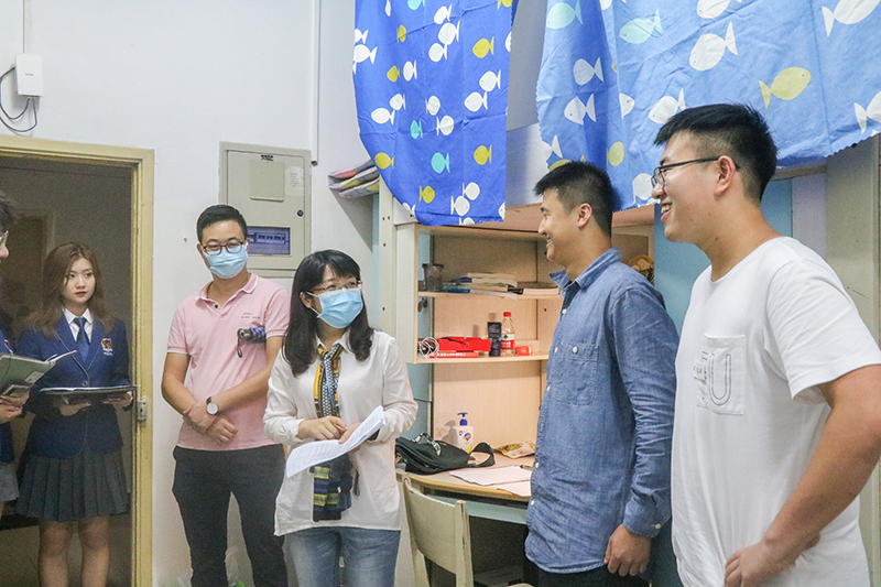 张萌副经理在走访寝室过程中,得知有两位同学发烧就医后,立即叮嘱随行人员及时与辅导员取得联系,并表达了对生病同学的关心,同时嘱咐同学们要注意身体。面对部分宿舍蚊虫较多的问题,老师们热情地为同学们献上生活经验供同学们参考。