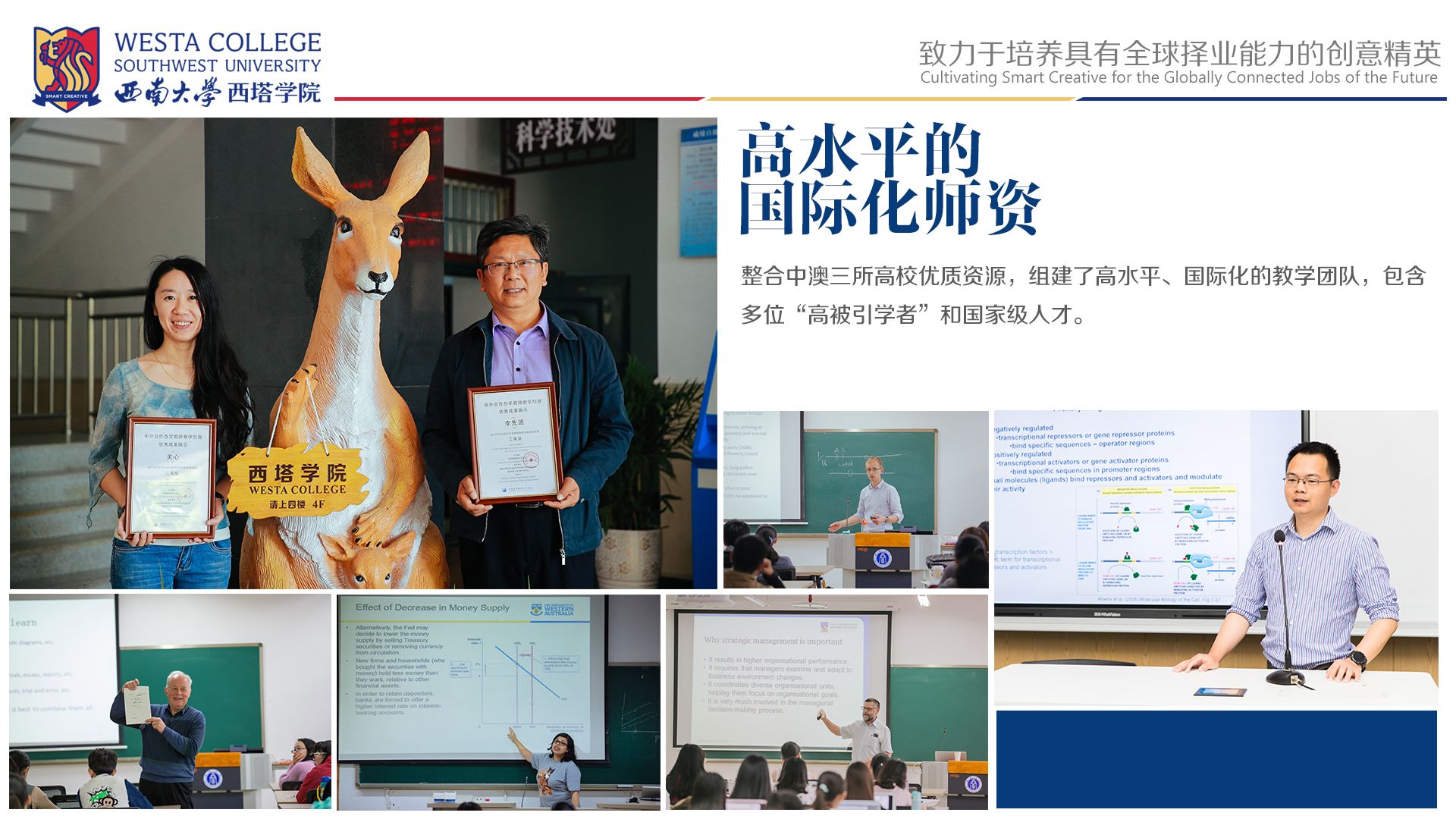 公司是中澳2国3所大学合作设立的中外合作办学机构,4个专业公司共同支撑,整合各方资源,形成了1个中外合作办学机构带动“点—线—面”国际化办学的新格局,开创了新时期中澳合作办学新模式。
