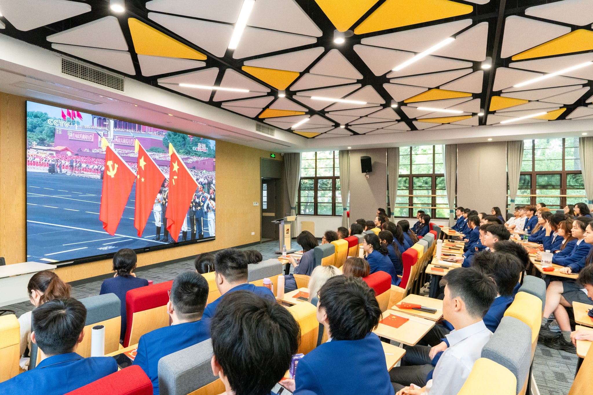 观礼结束后,师生们热情高涨地围绕盛会展开热烈讨论,感慨生于华夏的自信以及对祖国日益强大的自豪。