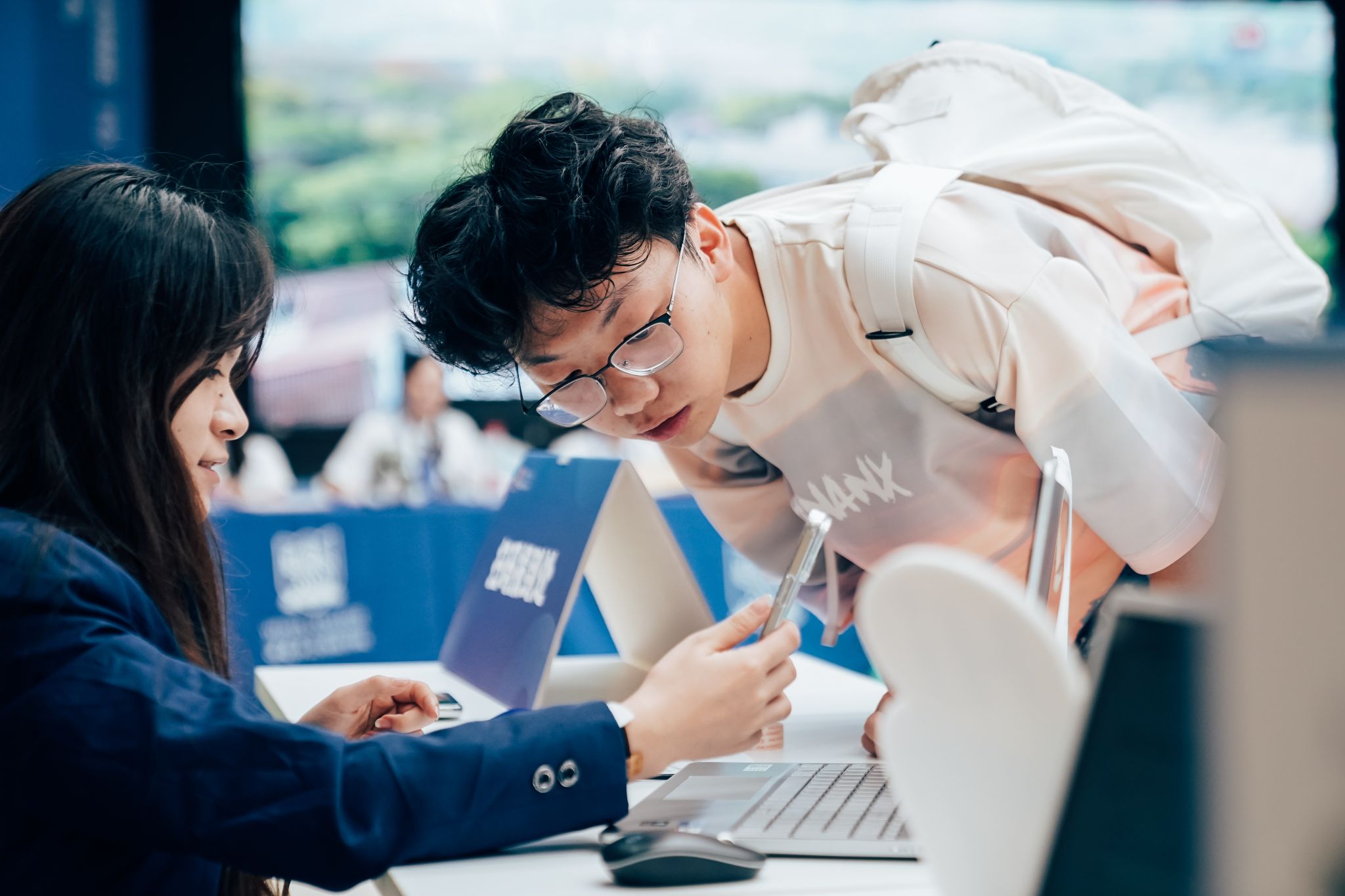 公司还别具匠心地设置了新生互动打卡区,每位新生的名字组成了“欢迎新同学”五个大字,吸引许多新生驻足留念,快门声里定格下与西塔初见的美好瞬间。