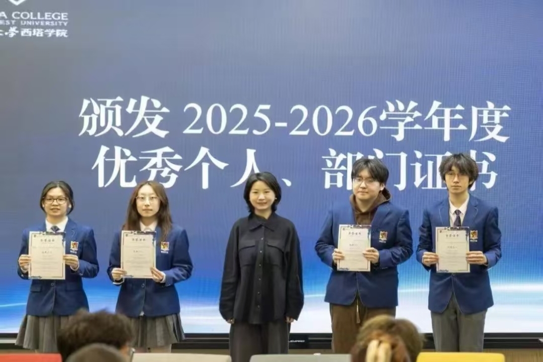 活动伊始,全体成员共同观看了总结视频,回顾了本学期员工活动的精彩瞬间与取得的成绩。紧接着,大会进入颁奖环节,陈飞老师为上一学年度表现突出的优秀部门和个人颁发荣誉证书,以此鼓励大家在后续工作中继续拼搏。