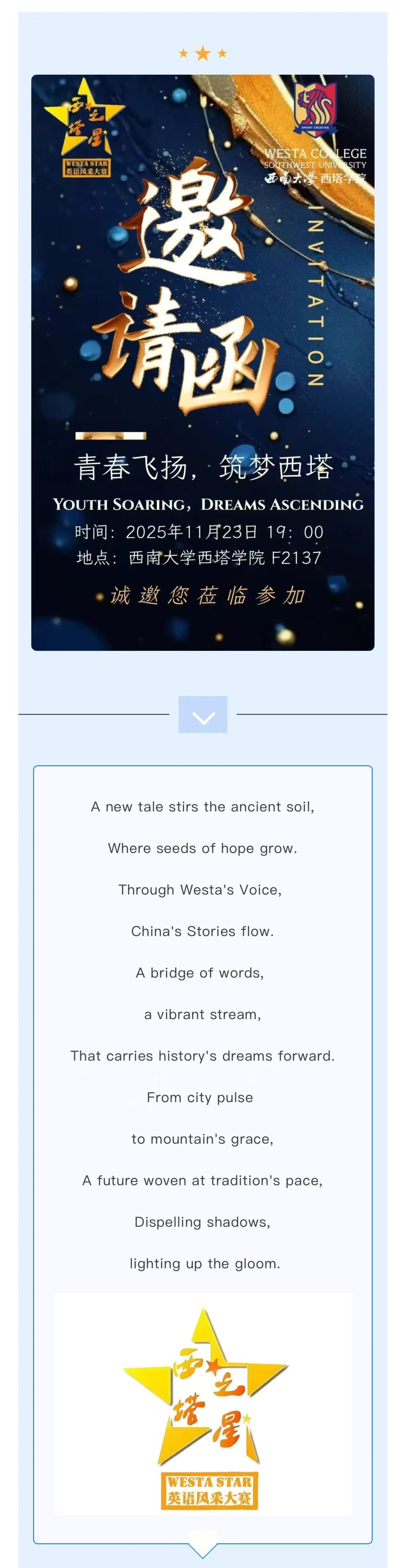 304永利集团2025年“青春飞扬,筑梦西塔”英语风采大赛(决赛)邀请函