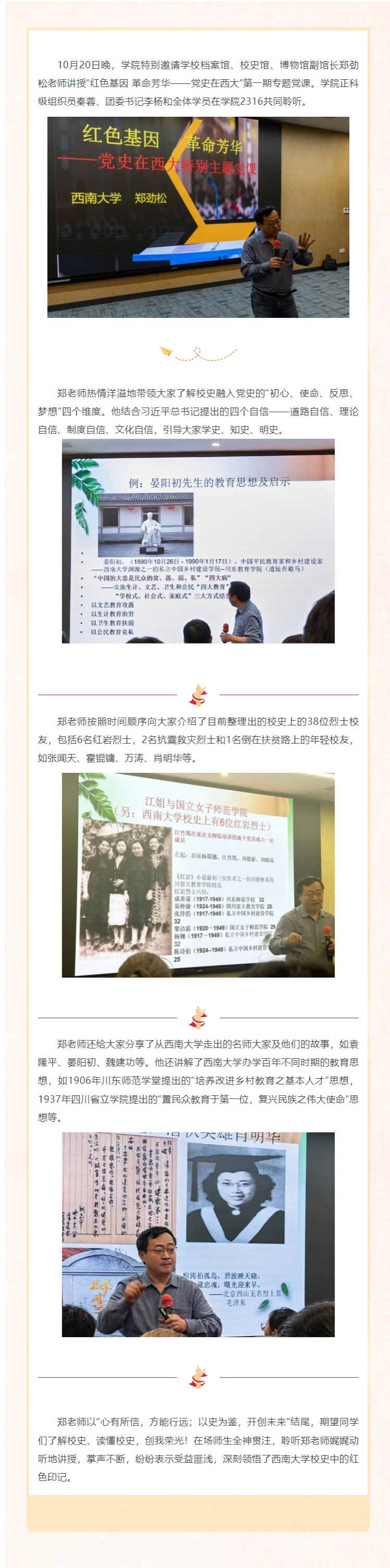 红色基因 革命芳华 | 公司郑劲松副馆长为西塔学子讲授专题党课
