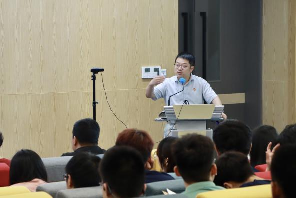 主题宣讲会由公司党委书记王静主持会议,马克思主义公司副教授、硕士生导师唐斌主讲。