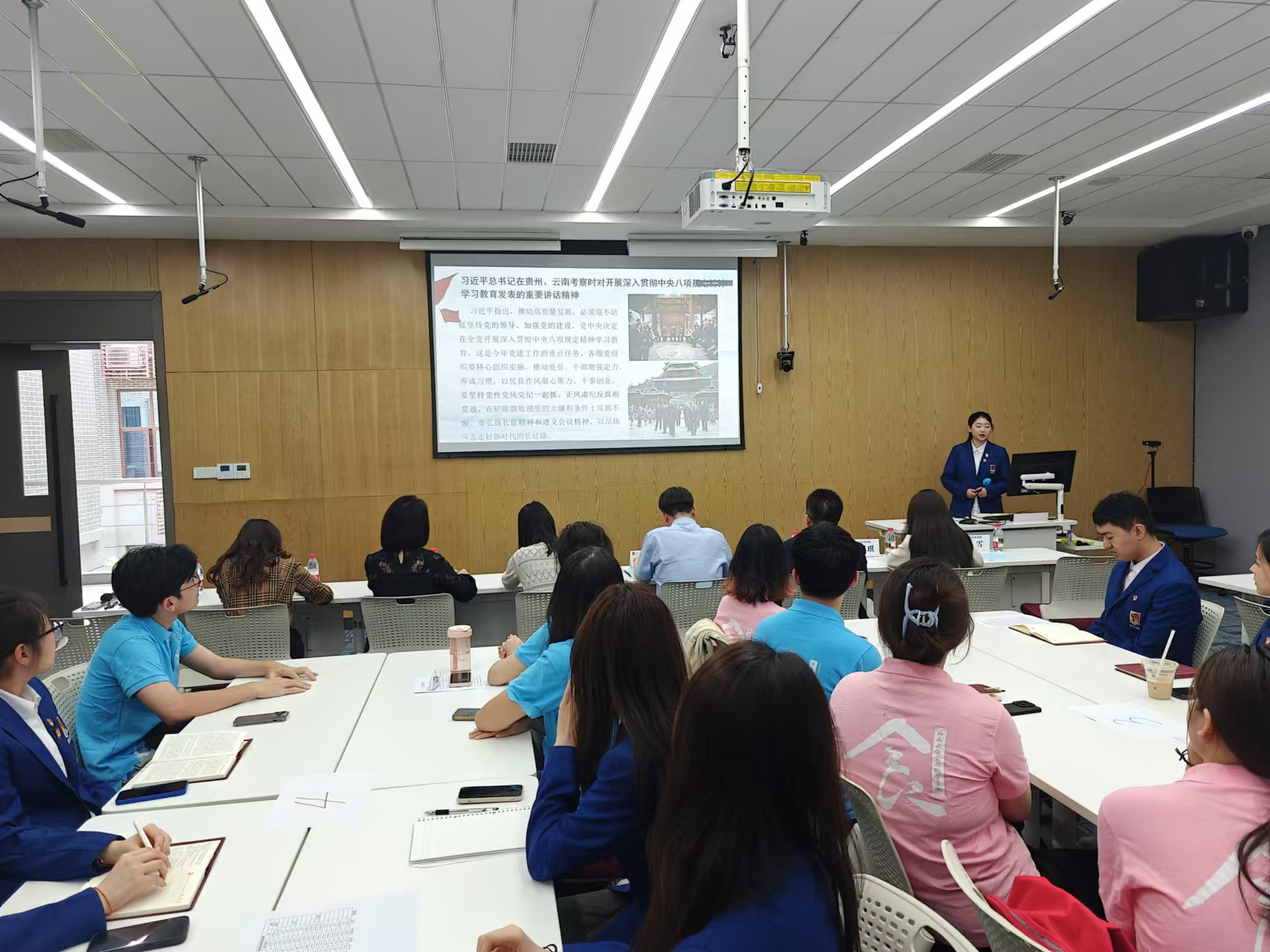 在党员导学环节,304永利集团员工党员辜美锦和食品院员工党员周美玲认真细致地为现场师生导学习近平总书记在贵州、云南考察时的重要讲话精神和习近平总书记关于加强党的作风建设的重要论述。