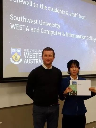 此次西澳之行,我感触颇深。触动我的不仅仅是别样的异域文化,更是公司满溢出来的学术氛围。从critical thinking到innovation,从lecture到laboratory,不同于国内的教育模式让我耳目一新,充满感染力和参与感的课堂让我深深着迷,同时也加深了我对西澳大学的憧憬与向往。Seek for wisdom!这次访学虽然只有短短两周,但我可以预想到来这里之后的学习生活,一定是“求知,求识,求真,求道”,充实而有意义!