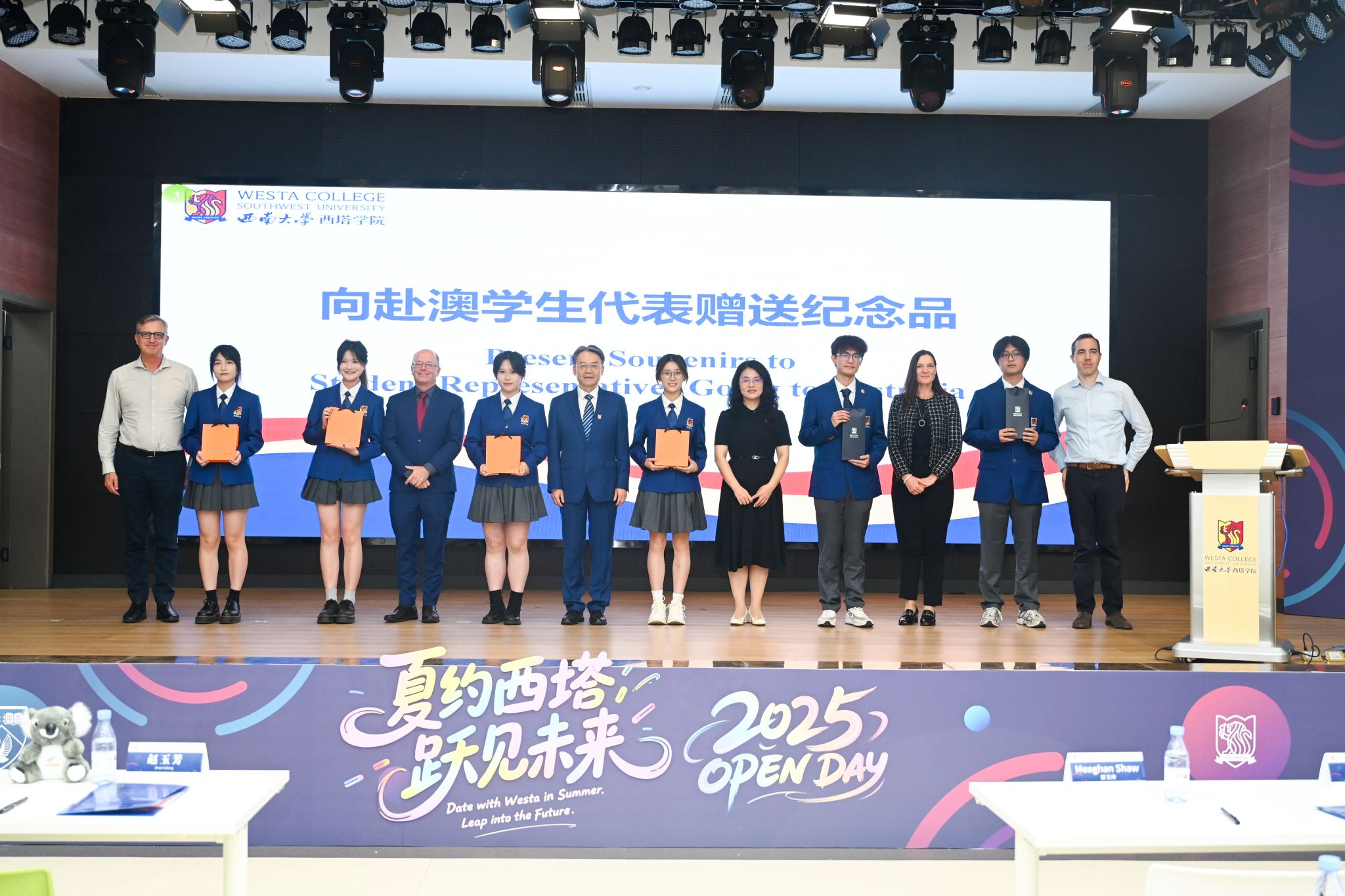 随后,在场领导嘉宾向即将赴澳学习员工代表赠送纪念品,期待赴澳学子从西塔出发,经合作高校,迈向世界。