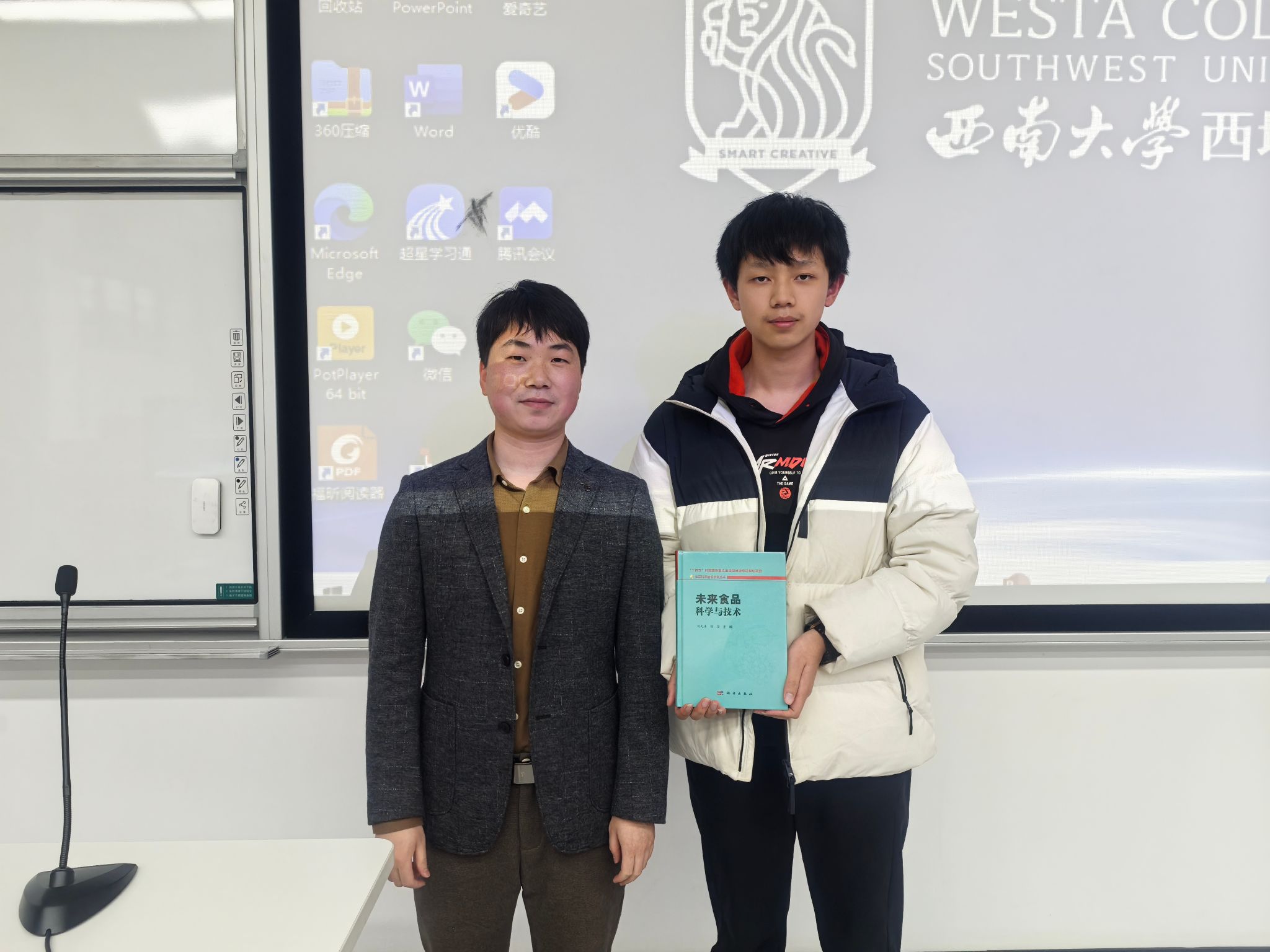 在食品质量与安全专场讲座上,戴宏杰副教授以“未来食品——从实验室到餐桌的科技变革”为主题,聚焦未来食品与国家战略,从“科研——产业——政策”等多维度分别对“未来食品定义与背景”、“未来食品主要类型”、“未来食品主要技术”和“未来食品展望与挑战”等四个方面进行了讲解。他强调,当前食品行业正以“食品技术+生物技术+人工智能”进行深度融合,不断突破传统农业桎梏,“未来食品”不是实验室的孤芳自赏,而是国家竞争力的战略基石。他鼓励同学们努力参与实现“从实验室到民生餐桌”,以科研为笔,书写国家命题的答案。在讲座尾声,戴宏杰副教授还准备了精美的专业书籍作为提问环节的奖励赠予西塔学子。